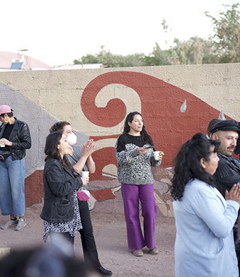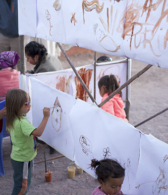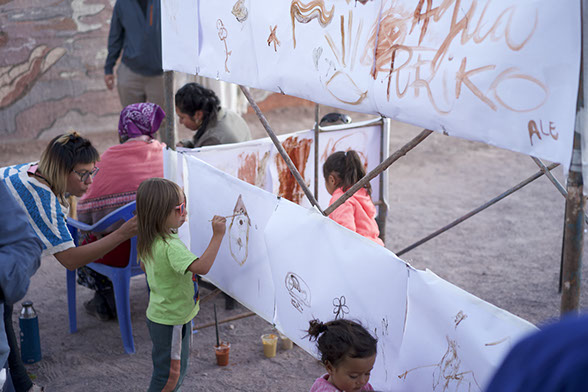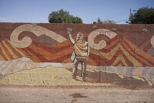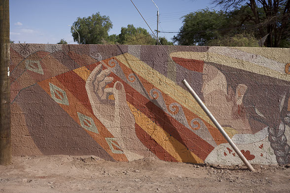Una vez más Pangea Fundación inaugura un mural a base de pinturas de pigmentos minerales en San Pedro de atacama , Pangea Fundación se dedica a la puesta en valor del patrimonio construido en tierra y materiales localmente disponible ,cada año realizan talleres teórico prácticos donde se enseña a construir en técnicas tradicionales de san pedro de atacama .