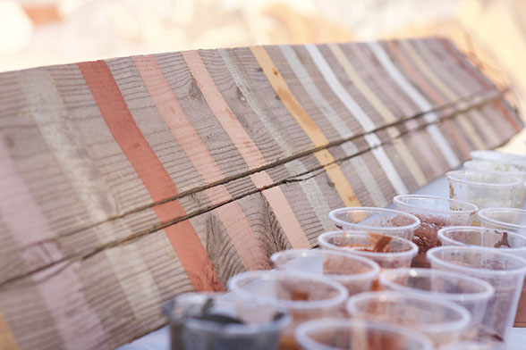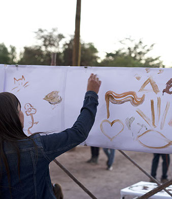 TÉCNICA: PINTURAS DE TIERRA SOBRE MURO DE BLOQUES DE CEMENTO