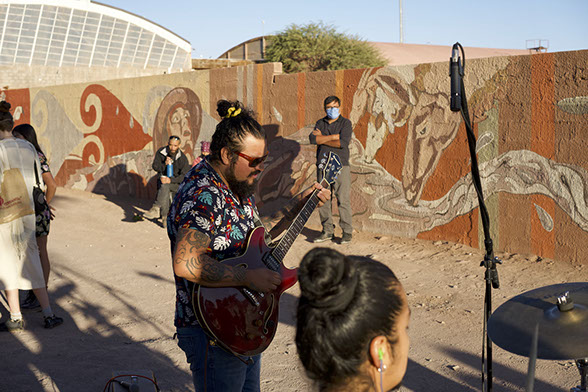 Este mural tiene la particularidad que su equipo está conformado por 5 artistas que residen en San Pedro de atacama a diferencia de otros proyectos murales en que el equipo Pangea viajaba para ejecutar , esta vez el equipo fue local y contó con la participación de Carmen Aramayo , grabadora , Antonia del Pedregal , ceramista , Joao filho , artista experimental , Sergio Aguilar , pintor y Marcela Serrano , arquitecta y artista visual , todos ellos se desarrollan en las artes visuales , y esta vez compartieron un mural conjunto , una vez por semana el mural contó con la musicalización del músico Sebastián del campo.
