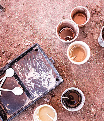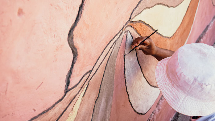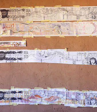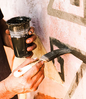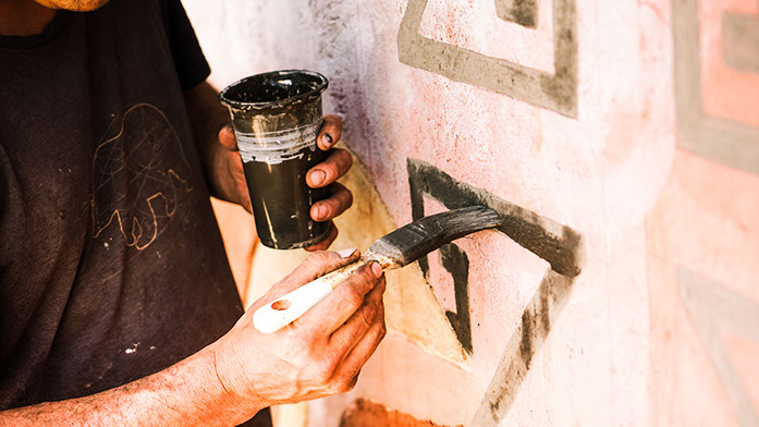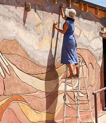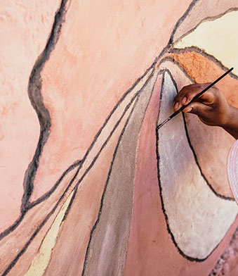 TÉCNICA: PINTURAS DE TIERRA SOBRE MURO DE BLOQUES DE CEMENTO Y REVOQUES FINOS Y PINTURAS DE TIERRA SOBRE MURO DE ADOBE.