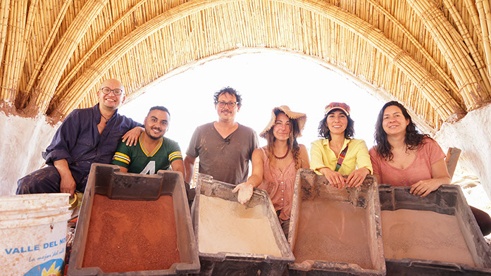 El mural trae a presencia el Ayni , que evoca la reciprocidad entre las personas, una mujer de rasgos indígenas y una mujer de rasgos europeos intercambian alimentos chañar y choclos , en la segunda escena aparece una mujer con rasgos indígenas que cosecha peras de pascua y un niño con rasgos europeos que puede ser el nieto de la señora, este cosecha choclos, este mural trae a presencia la integración y diversidad racial que alberga San pedro de atacama y al alimento del lugar.