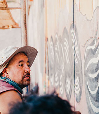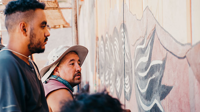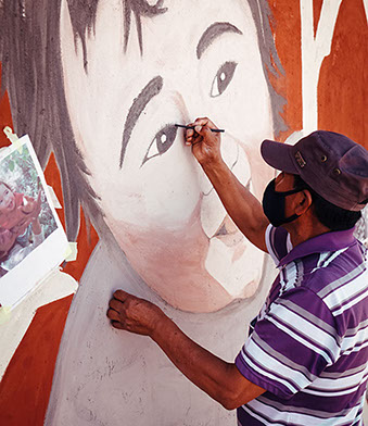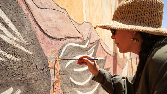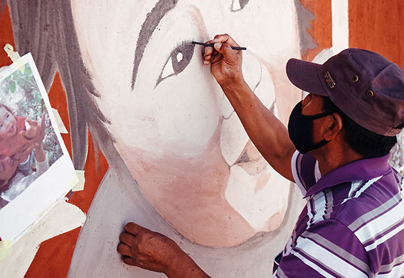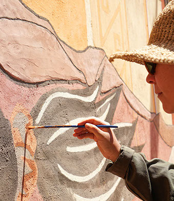 COLABORAN: LA CREACIÓN ARTISTICA DE ESTE MURAL FUE EN COLABORACIÓN CON INFINITAS CONEXIONES, COLABORÓ EN HITO INAUGURAL PUEBLO DE ARTESANOS Y FUNDACIÓN DE CULTURA Y TURISMO.