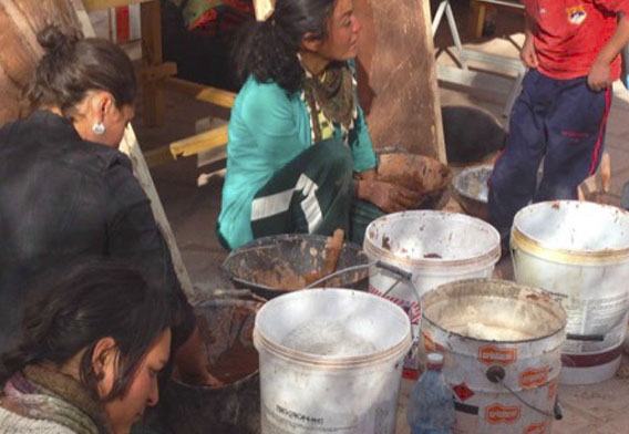 Jornada de muestra de diferentes oficios propios de San Pedro de Atacama, donde se expone el revoque fino en tierra como una de las técnicas ancestrales de construcción, haciendo partícipe a la comunidad mediante la elaboración in situ de cuadros sobre bastidores de madera. Junto con ello se dan a conocer los diferentes tipos de tierra propios del lugar, su composición, estabilizado y modo de aplicación, sumado a aglomerantes naturales como el jugo de tuna y excrementos de caballo fermentado para mejorar las diferentes mezclas.